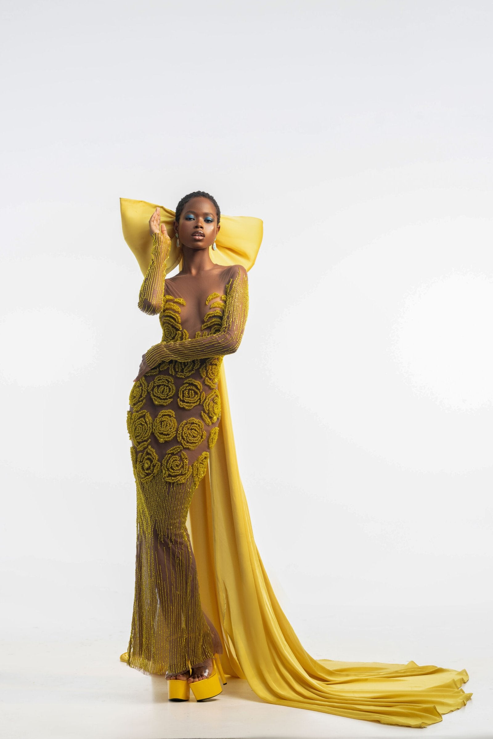 The FLUORESCENCE is handcrafted by the in-house team at Marvee, each garment is Made-to-Order and may take 8 weeks to produce as it takes many hours of workmanship to produce. Please contact us on info@marvee.org if you need this product sooner. This garment can be upcycled. Hand made in Nigeria.